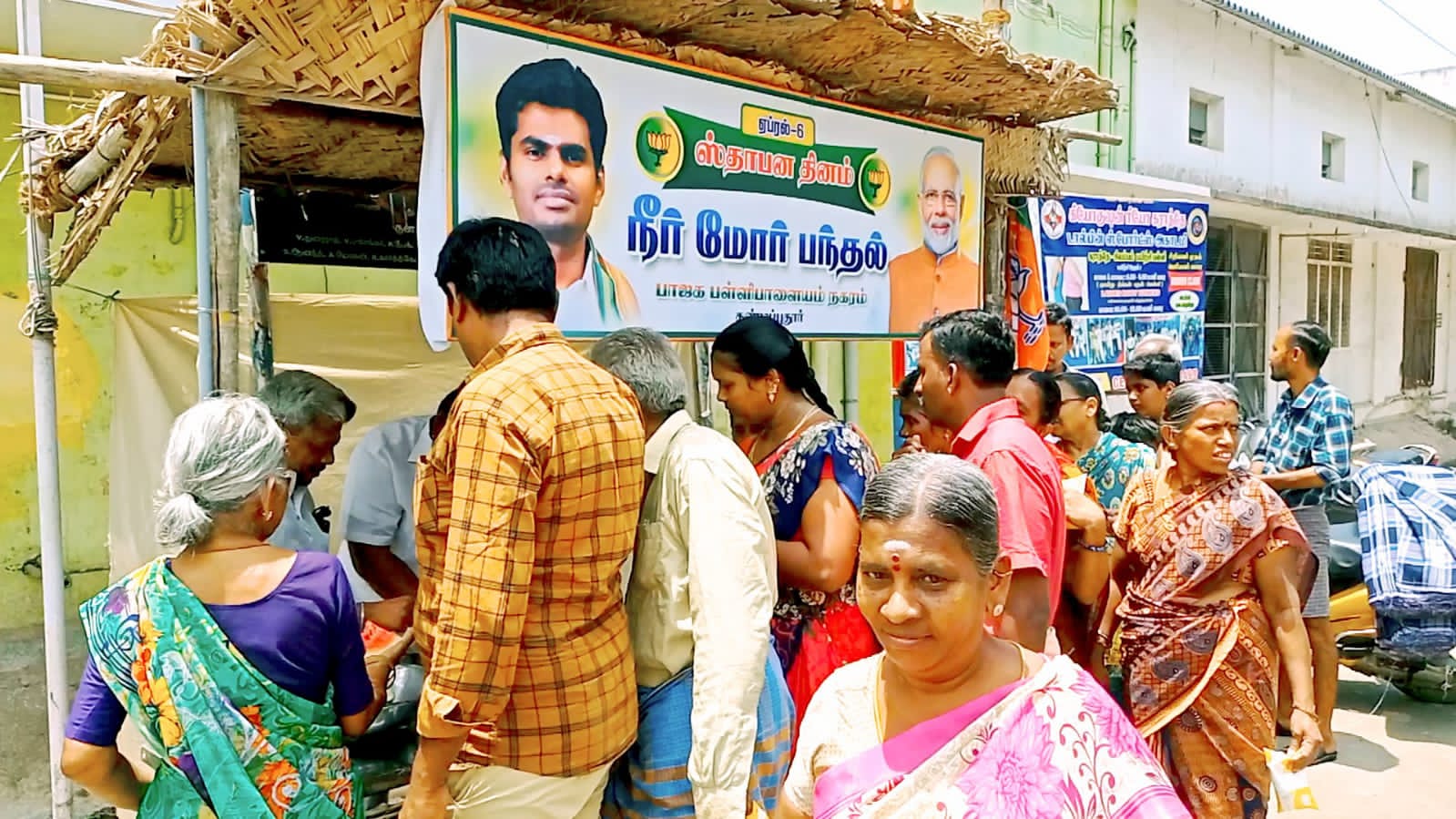 பாரதிய ஜனதா கட்சியின் 42-வது ஸ்தாபனம் தினத்தை முன்னிட்டு தமிழகம் முழுவதும் பல்வேறு மாவட்டங்களில் பல்வேறு பகுதிகளில் ரத்ததான முகாம் நலத்திட்ட உதவிகள் மரம் நடுதல் போன்ற பல்வேறு நிகழ்வுகளை பாரதிய ஜனதா கட்சி சார்பில் நடைபெற்று வரும் நிலையில் இதன் ஒரு பகுதியாக நாமக்கல் மாவட்டம் பள்ளிபாளையம் நகராட்சிக்குட்பட்ட கண்டிப்புதூர் பகுதி அருகே பாரதிய ஜனதா கட்சியின் சார்பில் கோடை கால நீர்மோர் பந்தல் திறக்கப்பட்டது.. இந்த நிகழ்விற்கு ஸ்தாபன நாள் நிகழ்ச்சி நகர பொறுப்பாளர் ரமேஷ் தலைமை தாங்கினார்.. லட்சுமிநாராயணன் நெசவாளர் அணி பிரிவு அவர்கள் நீர் மோர் பந்தலை திறந்து வைத்தார்… மற்றும் ஆனந்தா ராகவன் மகளிரணி, பாலாஜி ஈஸ்வரன் நகர தலைவர் அரசு தொடர்பு அணி பிரிவு மற்றும் பாரதிய ஜனதா கட்சியின் முக்கிய நிர்வாகிகளும் உறுப்பினர்களும் இந்நிகழ்வில் கலந்து கொண்டு பொதுமக்களுக்கு இளநீர், வெள்ளரிப்பிஞ்சு, தர்பூசணி ,பழம் உள்ளிட்ட குளிர்ச்சி தரும் கனி வகைகள் பொதுமக்களுக்கு இலவசமாக வழங்கினார். பாரதிய ஜனதா கட்சியின் தமிழ் மாநிலத் தலைவர் அண்ணாமலை அவர்கள் வழிகாட்டுதல்படி இந்த நீர்மோர் பந்தல் ஆனது சேவை வாரமாக அனுசரிக்கப்பட்டு இந்த வாரம் முழுவதும் பொதுமக்கள் தாகம் தீர்க்கும் வகையில் நீர் மோர் பந்தல் செயல்படும் என பாரதிய ஜனதா கட்சி நிர்வாகிகள் தெரிவித்தனர்