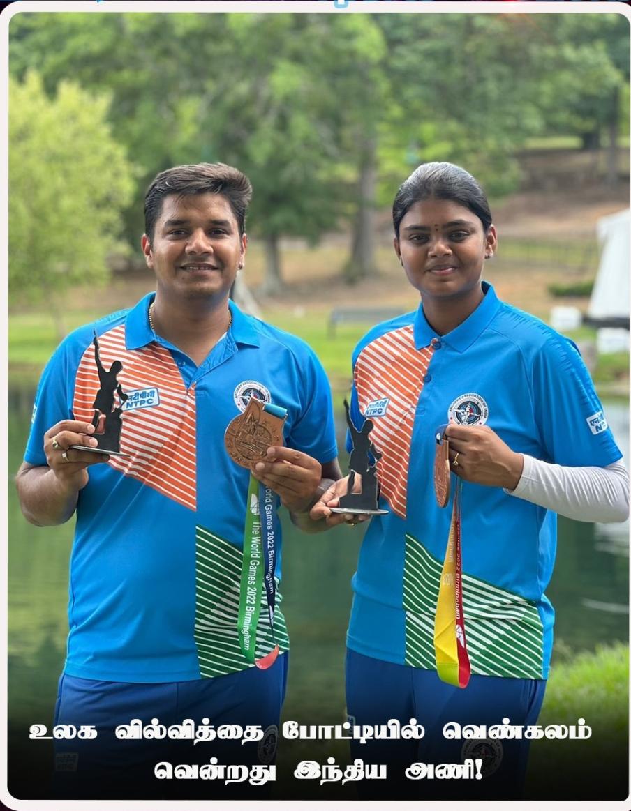 பர்மிங்காமில் நடைபெற்ற உலக வில்வித்தை போட்டியில் இந்திய அணி வெண்கலப் பதக்கம் வென்றது. அபிஷேக் வர்மா, ஜோதி சுரேகா ஆகியோர் அடங்கிய இந்திய அணி வெண்கலப்பதக்கம் வென்றுள்ளது.