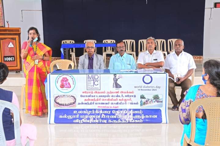 உலக சர்க்கரை நோயாளிகள் தினத்தை முன்னிட்டு குமாரபாளையம் பல்லக்காபாளையம் பகுதியில் உள்ள. தன்வந்திரி செவிலியர் கல்லூரியில் இன்று நடைபெற்ற கருத்தரங்கில் மோனிகா டயாபட்டிக் மருத்துவமனையின் மருத்துவர் . தங்கவேல் அவர்கள் மாணவிகளிடம் கலந்துரையாடினார் .