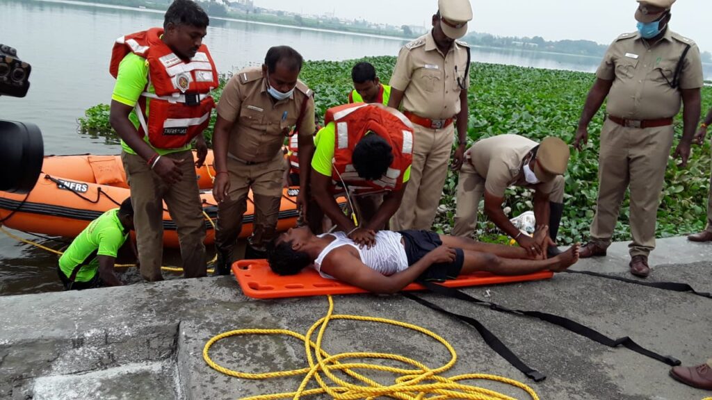 பள்ளிப்பாளையத்தில் வட கிழக்கு பருவ மழை வெள்ள போலி ஒத்திகை நிகழ்வு நடைபெற்றது.
