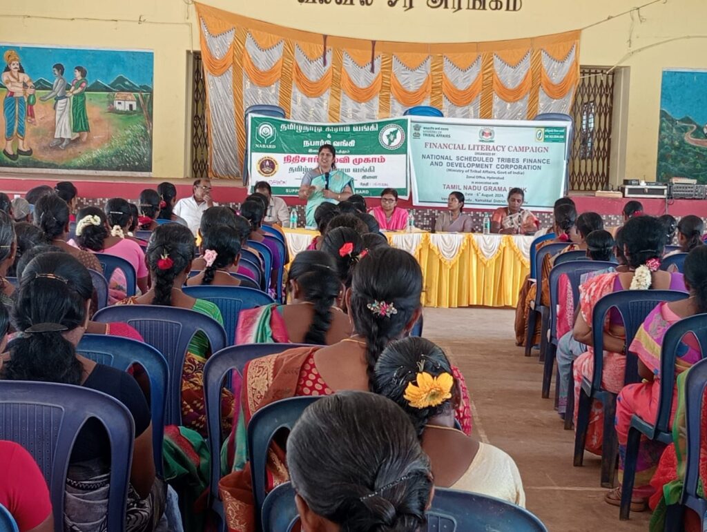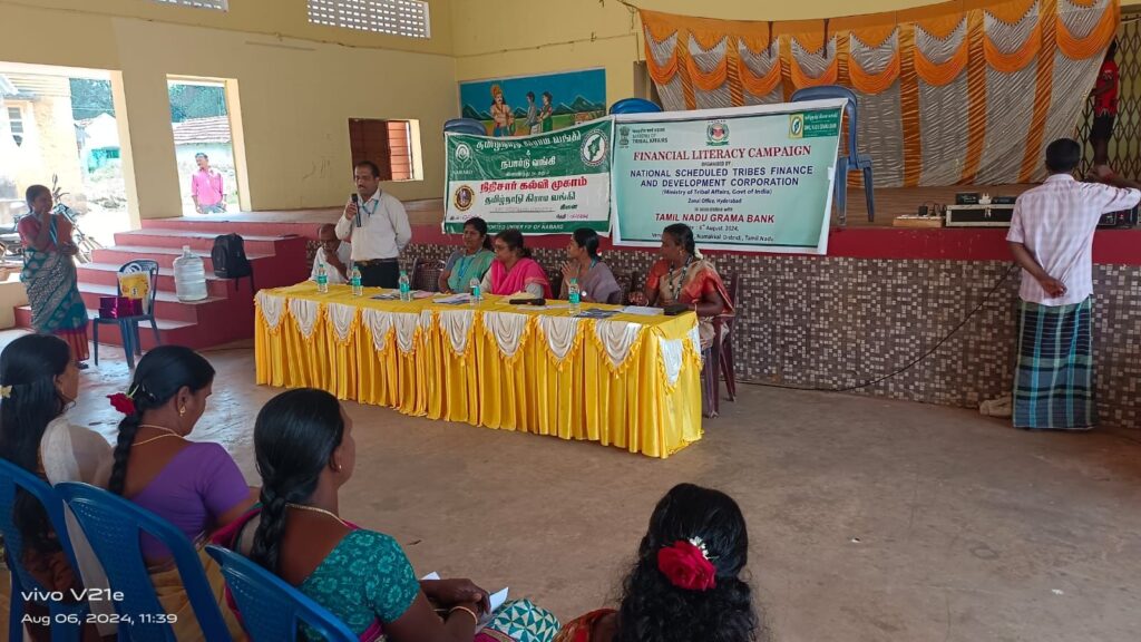 தமிழ்நாடு கிராம வங்கி,காளப்நாயக்கன்பட்டி கிளை நபார்டு & NSTFDC உடன் இனைந்து நிதி சார் கல்வி முகாம் நடத்தியது