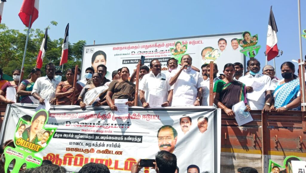 முன்னாள் அமைச்சர் ஜெயக்குமார் கைது செய்யப்பட்டிருப்பதற்க் கும், கழக ரத்தத்தின் ரத்தங்கள் மீது பொய் வழக்குகள் போடப்பட்டிருப்பதற்கும் மக்கள் விரோத போக்கை கண்டித்தும் விடியா அரசைக் கண்டித்து