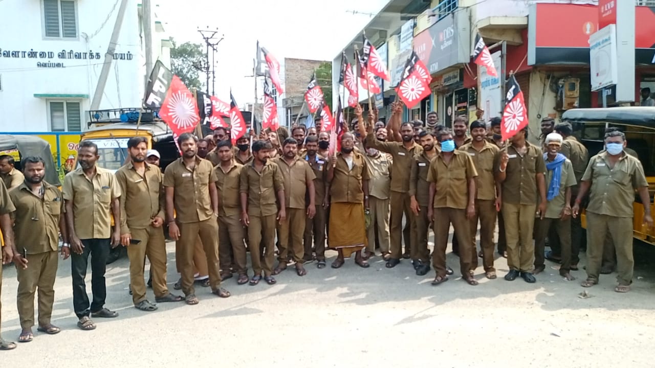 நாமக்கல் மாவட்டம் பள்ளிபாளையம் அடுத்துள்ள வெப்படை நால்ரோடு பகுதியில் செயல்படும் தொழிலாளர் முன்னேற்ற சங்கம் ஆட்டோ ஓட்டுனர் பிரிவு சார்பில் வேலை நிறுத்த போராட்டம் நடைபெற்றது.