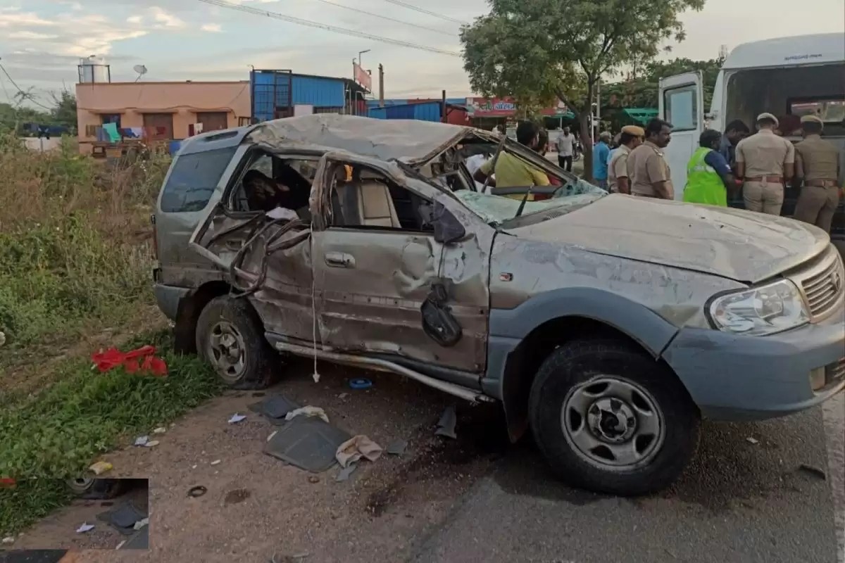 திண்டுக்கல் மாவட்டம் பழனி சேர்ந்தவர் கமலக்கண்ணன். இவர் மாவட்ட ஆட்சியர் அலுவலகத்தில் பணிபுரிந்து வந்துள்ளார். இவருக்கு லதா என்ற மனைவி உள்ளார். லதா வாலிபால் பயிற்சியாளராக பணியாற்றி வருகிறார்.இந்த சூழலில் கமலக்கண்ணன் தனது குடும்பத்தினருடன் திண்டுக்கலில் இருந்து சென்னைக்கு வந்து கொண்டிருந்தார். கார் மூலம் சாலை வழியாக பயணம் மேற்கொள்ளப்பட்டதில் லதாவின் அம்மா வேம்பு , லதாவின் அண்ணன் ராமச்சந்திரன், கமலக்கண்ணன் சித்தி மணிமேகலை ஆகியோரும் உடன் பயணித்தனர்.கமலக்கண்ணன் காரை ஓட்டி வந்த நிலையில் கார் திருச்சி சென்னை தேசிய நெடுஞ்சாலையில் பெரம்பலூர் அருகே உள்ள விஜயகோபலபுரம் பகுதியில் வந்து கொண்டிருந்தது அப்போது கட்டுப்பாட்டை இழந்த கார் சாலையில் இருந்த சென்டர் மீடியனில் மோதியது. இதனால் சுமார் 100 அடி தூரம் கார் உருண்டு சென்று விபத்துக்குள்ளாகியது. இந்த விபத்தில் கமலக்கண்ணன் அவரது மனைவி லதாவின் அம்மா ஆகியோர் சம்பவ இடத்திலேயே உயிரிழந்தனர். காயங்களுடன் லதாவின் அண்ணன் ராமச்சந்திரன், கமலக்கண்ணன் சித்தி மணிமேகலை ஆகியோர் பெரம்பலூர் அரசு மருத்துவமனையில் சிகிச்சைக்காக அனுமதித்துள்ளனர். இது குறித்து சம்பவ இடத்திற்கு தகவலறிந்து வந்த போலீசார் வழக்குப்பதிவு செய்து விசாரணை நடத்தி வருகின்றனர்.