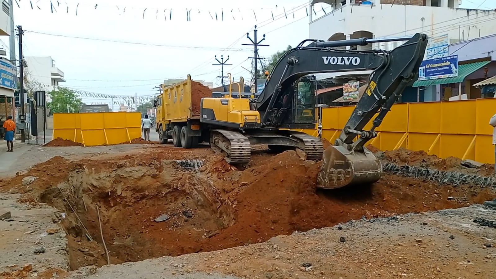 நாமக்கல் மாவட்டம் பள்ளிபாளையம் திருச்செங்கோடு சாலையில் போக்குவரத்து நெரிசலை குறைக்கும் வகையில் மேம்பாலம் அமைப்பதற்கான அனைத்து ஆய்வு பணிகள் முடிவுற்று தற்போது பணிகள் துவக்கப்பட்டுள்ளன…. இந்த பணியின் ஒரு பகுதியாக கடந்த வாரத்தில் ஆலாம்பாளையம் செல்லும் சாலையில் தூண்கள் அமமைப்பதற்கான பள்ளம் வெட்டப்பட்ட நிலையில் இன்று காலை பள்ளிபாளையம் ஜீவா செட் பகுதியில் ஜேசிபி இயந்திரங்களைக் கொண்டு சாலையில் பள்ளம் தோண்டும் பணியை நெடுஞ்சாலை ஊழியர்கள் செய்து வருகின்றனர். இரண்டு வருடங்களுக்குள் இந்த பணிகள் முடிவடையும் என தெரிவிக்கப்பட்டுள்ளது