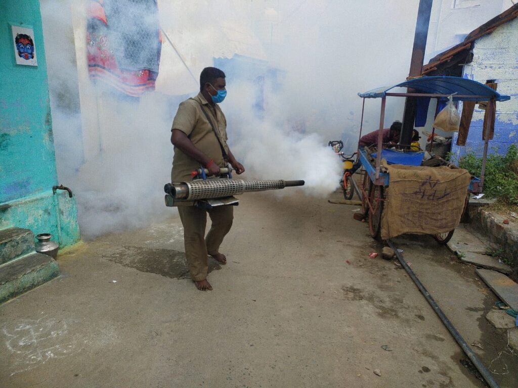 பள்ளிபாளையம் நகராட்சி வார்டுகளில் கொசு மருந்து அடிக்கும் பணி தீவிரம்