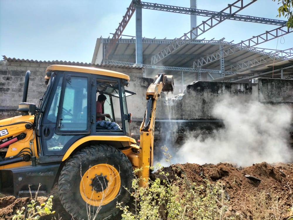 நாமக்கல் மாவட்டம் இராசிபுரம் பகுதிக்கு உட்பட்ட மங்களபுரம் பகுதியில் சந்தோஷ் லிமிடெட் என்ற பெயரில் தனியார் தொழிற்சாலை இயங்கி வருகிறது.இந்நிலையில் அந்த தொழிற்சாலை சட்டத்திற்கு புறம்பாக கிராமநத்தம், கோவில் இடம், நீர் வழித்தடம் ஆகிய இடங்களில் கட்டிடங்கள் கட்டி பயன் படுத்தப்படுவதாக மங்களபுரம் கிராம் பொதுமக்கள் புகார் மனு கொடுத்திருந்தனர்.மேலும் மாவட்ட ஆட்சியர் அலுவலகம் மற்றும் வட்டாட்சியர்,என தொடர் கோரிக்கை மனு கொடுத்த நிலையில் கடந்த மாதம் ஊர் பொதுமக்கள் சார்பில் கண்டன ஆர்ப்பாட்டம் நடைபெற்றது.எனவே இதனை அடுத்து (19.01.2023) இன்று காலை 10 மணி அளவில் தாசில்தார்,வட்டார வளர்ச்சி அலுவலர், அரசு நில அளவையர் , கிராம நிர்வாக அலுவலர் மற்றும் மங்களபுரம் காவல் துறையினர் என அனைவரும் பிரச்சினைக்குரிய இடத்தை பார்வையிட்டனர்.தொடர்த்து அது அரசு நிலம், மற்றும் நீர் வழி பாதை என்று உறுதியானது.எனவே இராசிபுரம் வட்டாட்சியர் தலைமையில் ஜேசிபி கொண்டு தொழிற்சாலை ஆக்ரமிப்பு செய்துகட்டப்பட்ட கட்டிடங்கள் மற்றும் சுற்றுச்சுவர் ஆகியவை அப்புறப்படுத்த பட்டு வருகிறது.மேலும் தொழிற்சாலையில் ஆக்ரமிப்பு அகற்றப்படுவதை அப்பகுதி பொதுமக்கள் கூட்டம் கூட்டமாக பார்த்து வருவதால் அப்பகுதியில் காலை முதல் பரபரப்புடன் காணப்படுகின்றது.