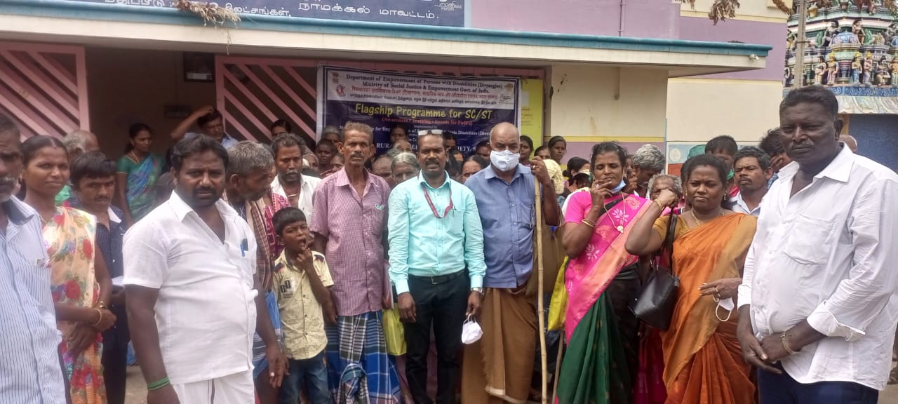 இன்று நாமக்கல் மாவட்டம் நாமகிரிப்பேட்டை வட்டம் ஊனான்தாங்கல் பஞ்சாயத்தில்உடல்ஊனமுற்றோர்க்கான விழிப்புணர்வு விழிப்புணர்வு நிகழ்ச்சியானது மெர்சி கிராம முன்னேற்ற சங்கம் மற்றும் மத்திய அரசின் சமூக நீதி மற்றும் மேம்பாட்டு அமைச்சகத்தின் தேசிய பல்வேறு ஊனமுற்றோர் கள் மேம்பாட்டு நிறுவனம்(NIEPMD) இணைந்து பட்டியல் இன பழங்குடியின மக்களுக்காக மாற்று திறனாளிகளுக்கான விழிப்புணர்வு நிகழ்ச்சி நடத்தப்பட்டது.இதில் ஊனான்தாங்கல் பஞ்சாயத்து தலைவர் திரு. சந்திரன் அவர்கள் தலைமை உரையாற்றினார்.ஒன்றிய கவுன்சிலர் திருமதி.சித்ரா சரவணன் அவர்கள் வரவேற்புரை வழங்கினார்.