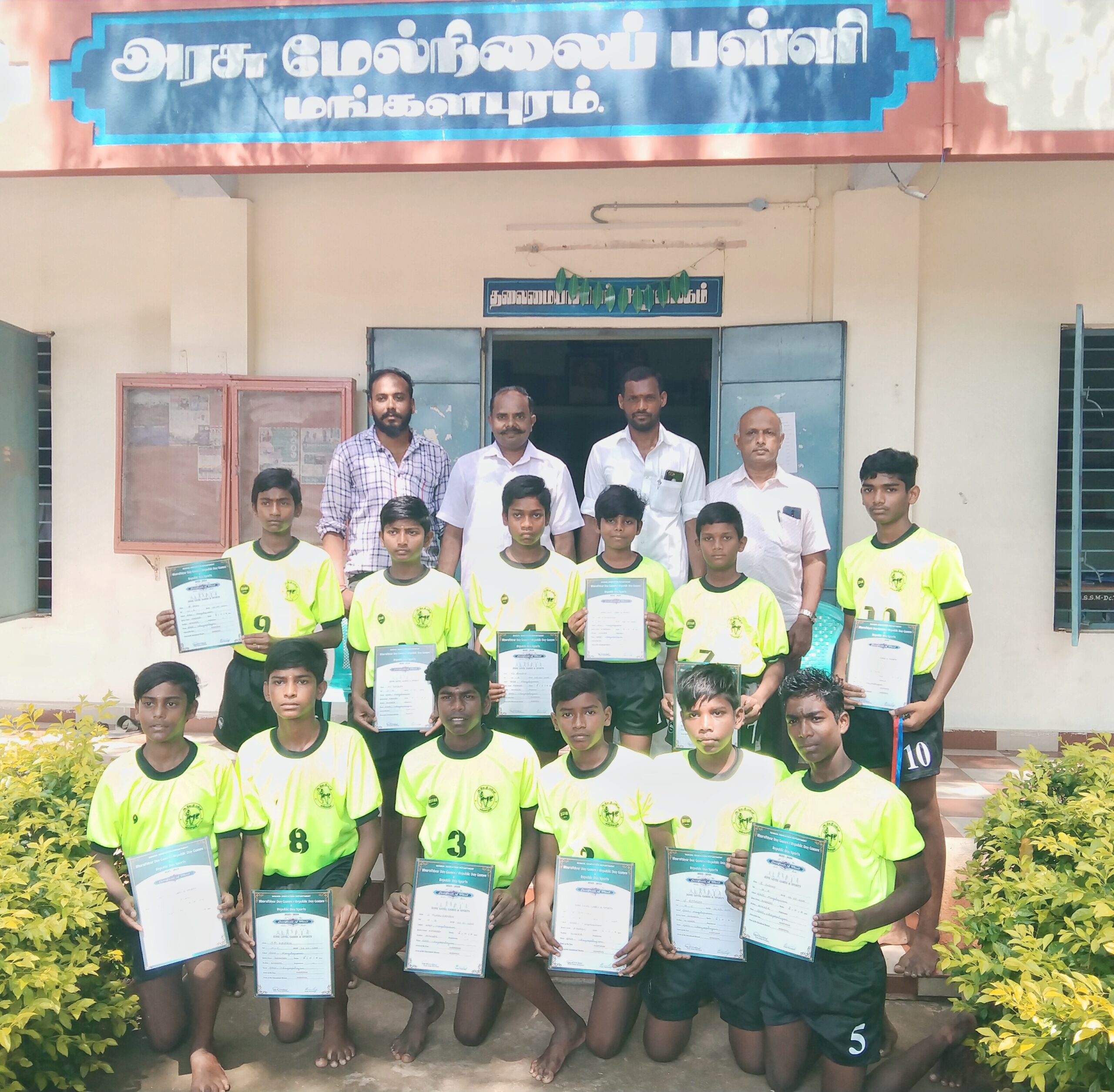 நாமக்கல் மாவட்டம் ராசிபுரம் பகுதிக்கு உட்பட்ட மங்களபுரம் பஞ்சாயத்து உள்ளது. இப்பகுதியில் ஸ்ரீ அருள் முருகன் அறக்கட்டளை கடந்த 2 வருடங்களுக்கும் மேலாக பொதுமக்கள் மற்றும் பள்ளி மாணவ மாணவிகளுக்கு பல சேவைகளை செய்து வருகிறது.தொடர்ந்து இங்குள்ள அரசு மேல்நிலைப் பள்ளியில் சுமார் ஆயிரத்துக்கும் மேற்பட்ட மாணவ மாணவிகள் படித்து வருகின்றனர். இந்த நிலையில் இங்கு விளையாட்டு துறை மாணவர்களுக்கு ஸ்ரீ அருள் முருகன் அறக்கட்டளை சார்பில் டீசர்ட்( 31.08.2023 ) (வியாழக்கிழமை)வழங்கப்பட்டது. இதில் அருள்முருகன் அறக்கட்டளை மாநிலத் தலைவர் எம் .எஸ் .அருள் மற்றும் மாநில துணை செயலாளர் சரவணன் மாநில துணை தலைவர்பிரபு மற்றும் விடியலை நோக்கி அறக்கட்டளை மாநிலத் தலைவர் மா.வீரமணிகண்டன் மற்றும் பள்ளி தலைமை ஆசிரியர் சீனிவாச ராகவன் , உடற்கல்வி ஆசிரியர்கள் முருகன்,செந்தில் ஆகியோர் கலந்து கொண்டனர்.