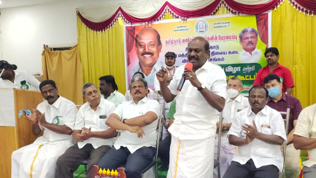 தமிழகம் முழுவதும் நகராட்சி பேரூராட்சி ஒன்றிய கடைகள் வாடகை உயர்வை குறைக்க தமிழ்நாடு வணிகர் சங்கங்களின் பேரவை அமைப்பு தீவிர முயற்சி எடுத்து வருகிறது. இது ஒரே நாளில் நடக்கும் செயல் அல்ல நகராட்சி கடைகளுக்கு சீல் வைப்பு என்பது இருக்க கூடாது அனுமதிக்காது. நியாமான வாடகையை கட்ட பேரவை அமைப்பு தயாராக உள்ள. நகராட்சி தேர்தல் நடந்த பிறகு நகர் மன்றங்கள் மூலம் தீர்மானம் நிறைவேற்றி வாடகை குறைக்க நடவடிக்கை எடுக்கப் படும். நமது குறைகளை கேட்டு காணொலி காட்சி மூலம் அதிகாரிகளிடம் பேசி நடவடிக்கை எடுக்க கூடிய முதல்வரும் தலைமை செயலாளரும் நமக்கு கிடைத்திருக்கிறார்கள் திருச்செங்கோட்டில் நடந்த நகர மத்திய பேருந்து நிலைய கடை வியாபாரிகள் சங்க பெயர் பலகை திறப்பு விழா மற்றும் நிர்வாகிகள் ஆலோசனைக் கூட்டத்தில் கலந்து கொண்ட தமிழ்நாடு வணிகர் சங்கங்களின் பேரவை அமைப்பு மாநிலத்தலைவர் விக்கிரமராஜா பேச்சு