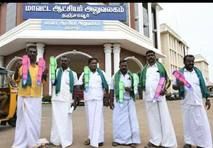 தஞ்சாவூர் கலெக்டர் அலுவலகத்தில், விவசாயிகள் குறை தீர் கூட்டம், கலெக்டர் தினேஷ் பொன்ராஜ் ஆலிவர் தலைமையில் நேற்று நடந்தது.அப்போது, விவசாயிகள் சங்கங்களின் கூட்டு இயக்கத்தின் மாநில துணைத்தலைவர் சுகுமாறன் தலைமையில், ‘தெர்மகோல்’ பேனாவுடன் வந்த விவசாயிகள் கோரிக்கை மனுஅளித்தனர்.மனுவில் அவர்கள் கூறியிருந்ததாவது: டெல்டா மாவட்டத்தில், 2021 – 22 ஆண்டு பெய்த மழையால் பயிர்கள் பாதிக்கப்பட்ட நிலையில், அதற்கான இன்சூரன்ஸ் இதுவரை விவசாயிகளுக்கு வழங்கவில்லை.