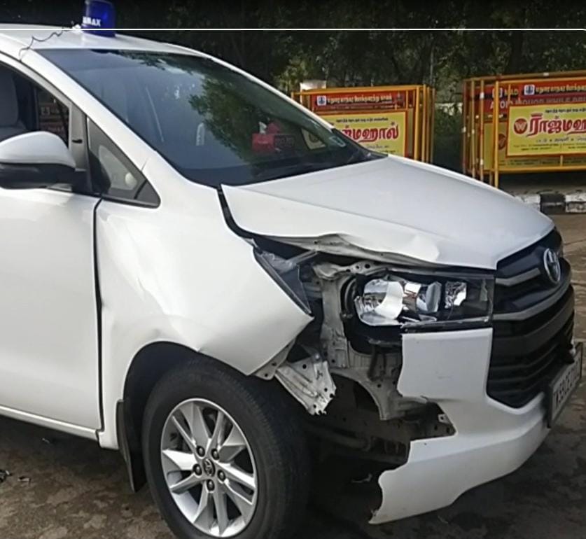 தமிழக சுகாதாரத்துறை செயலாளர் ராதாகிருஷ்ணன் சென்ற கார் விபத்துக்குள்ளானது.