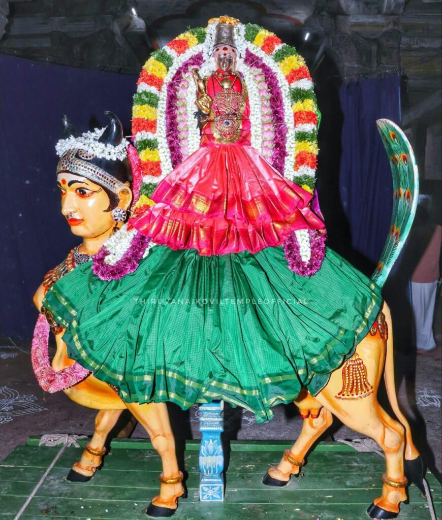திருவானைக்காவல் அருள்மிகு அகிலாண்டேஸ்வரி ஜம்புகேஸ்வரர் திருக்கோயிலில் நடைபெற்று வரும் ஆடி தெப்ப உற்சவ பெருவிழாவின் 3ம் நாளான (21.07.2025) அம்பாள் சிறப்பு அலங்காரத்தில் காமதேனு வாகனத்தில் எழுந்தருளி வீதி உலா வந்து அருள் பாலித்தார்.