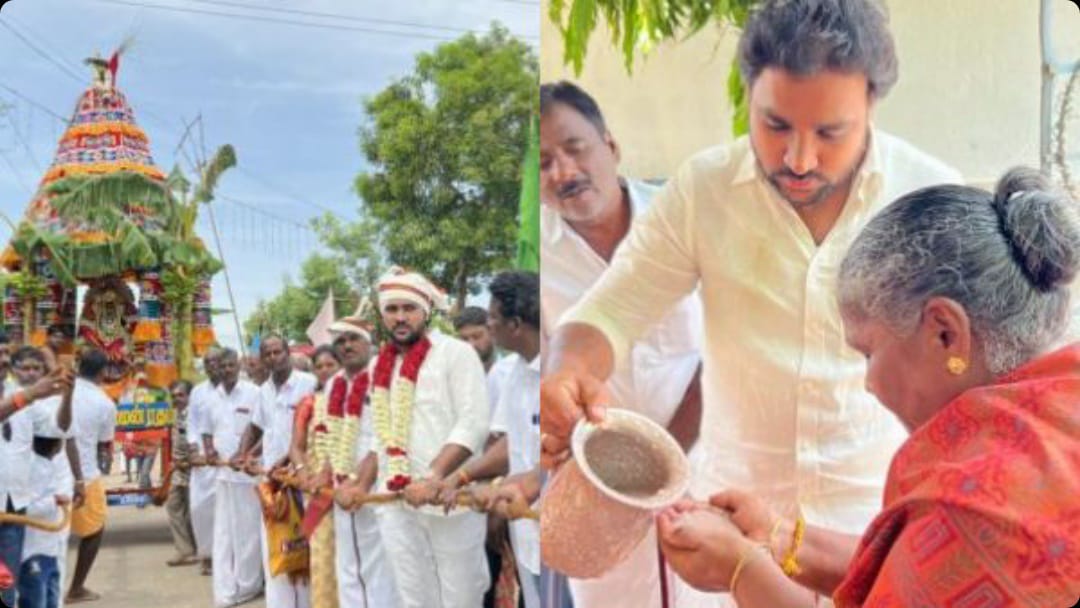 விழுப்புரம்: விழுப்புரம் மாவட்டம் செஞ்சியில், கோவிலில் கூழ் காய்ச்சி ஊற்றி கவனம் ஈர்த்திருக்கிறார் சிறுபான்மை நலத்துறை அமைச்சர் செஞ்சி மஸ்தானின் மகன் மொக்தியார்.